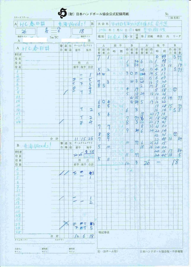 スローペースで試合は進み、お互いに点を取り合いながら前半は12-11の1点リードで折り返しました。