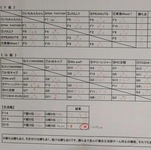 今回は男子25チーム、女子11チームのエントリーだったため、男子は5リーグ、女子は2リーグで予選を行いました。