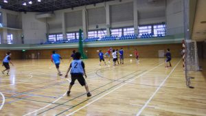 パス・シュートで軽く体を慣らした後、男子は3チーム+α、女子は1チームで15分ゲームを回しました。